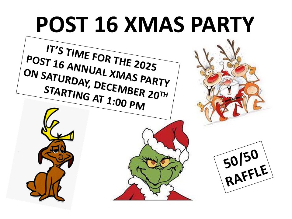 Next Post 16 monthly meeting is Tuesday, December 2nd, at 6 PM.