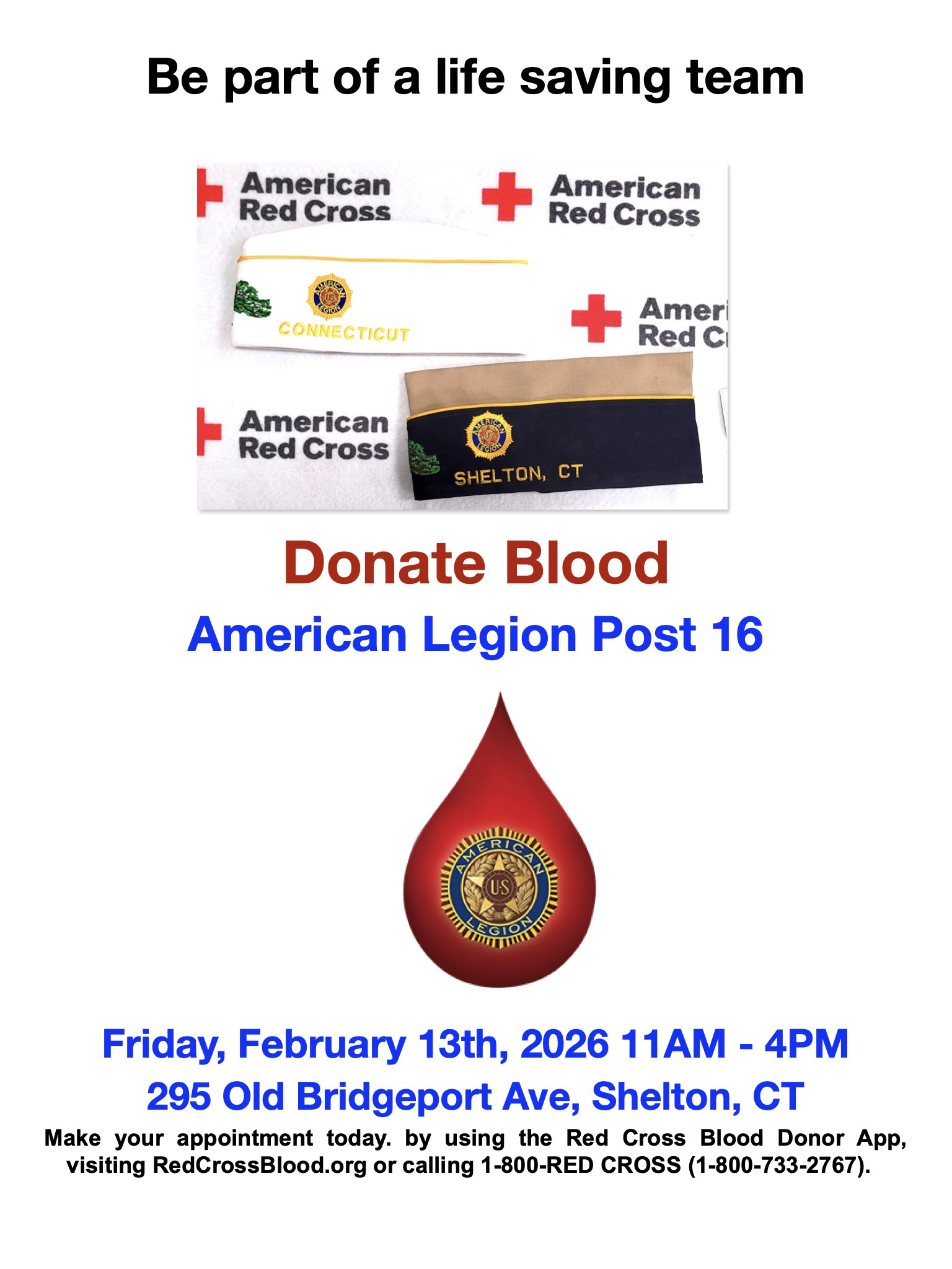 Post 16 monthly meetings are held at 6 PM on the First Tuesday of the month.